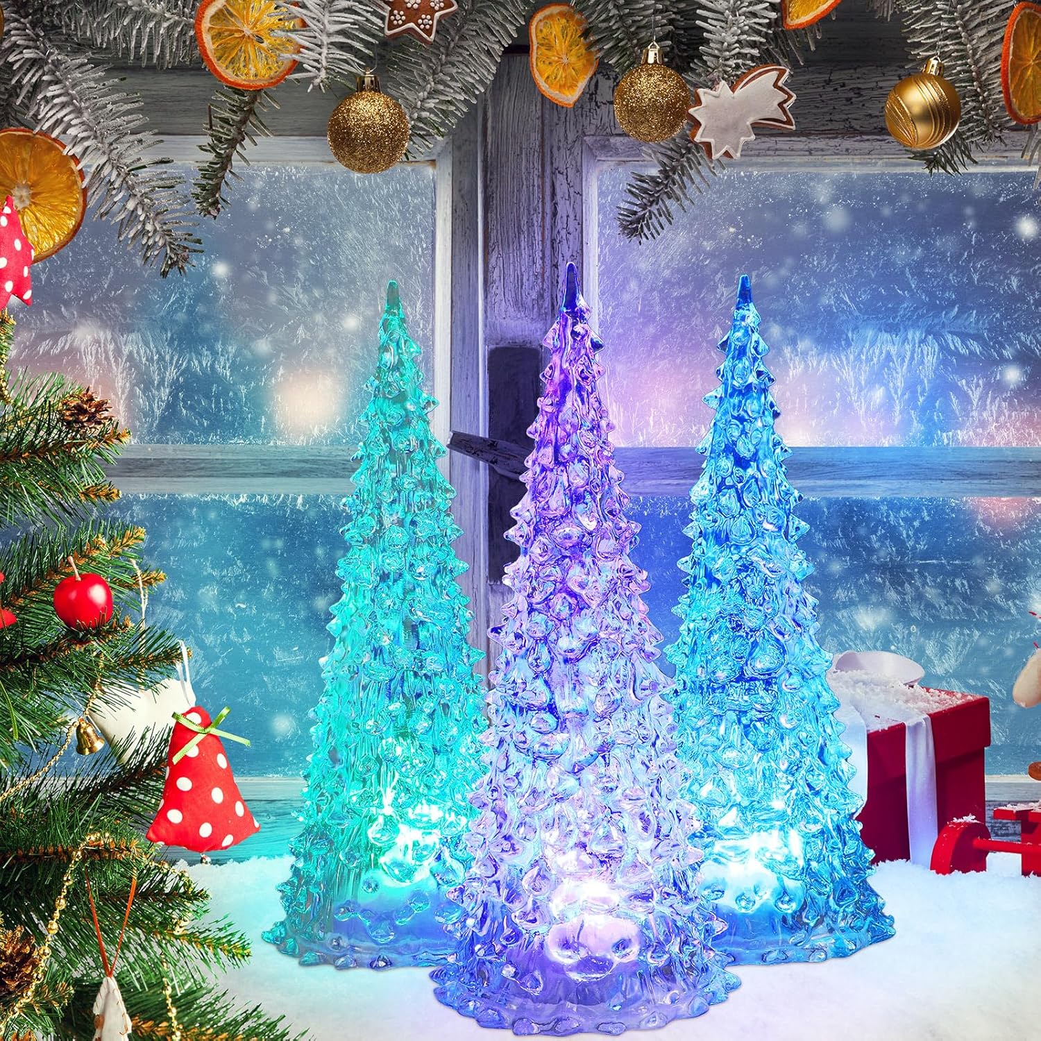 With a translucent crystal texture, each tree shimmers even unlit—when on, it glows softly in cool blue, dreamy purple, or warm multicolor. Its intricate details mimic snow-covered pines (adding elegant whimsy), and multiple sizes let you group for layered, eye-catching displays.