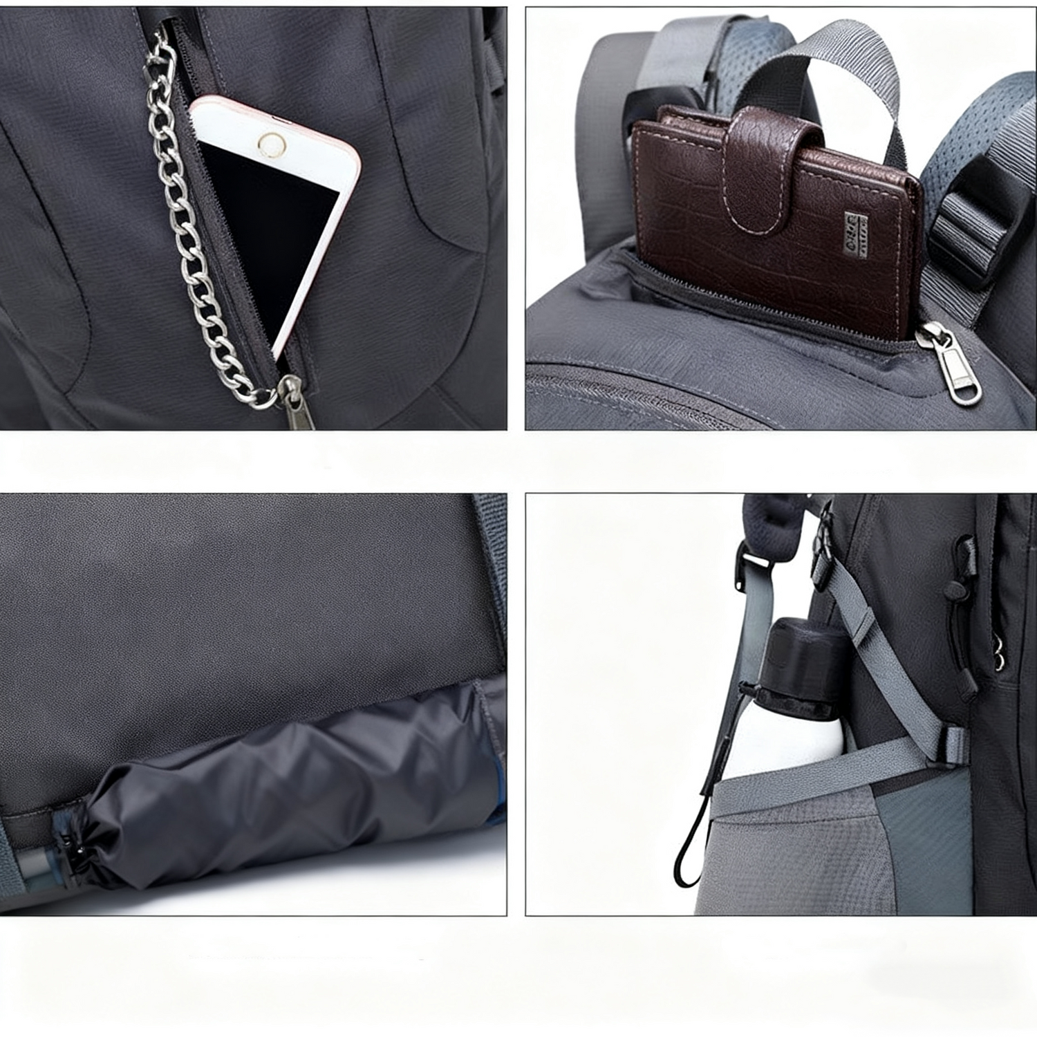 Equipped with a durable rain cover, this backpack keeps your belongings safe and dry in sudden downpours. The strong, waterproof material ensures full protection against rain, letting you carry your essentials confidently in any weather.