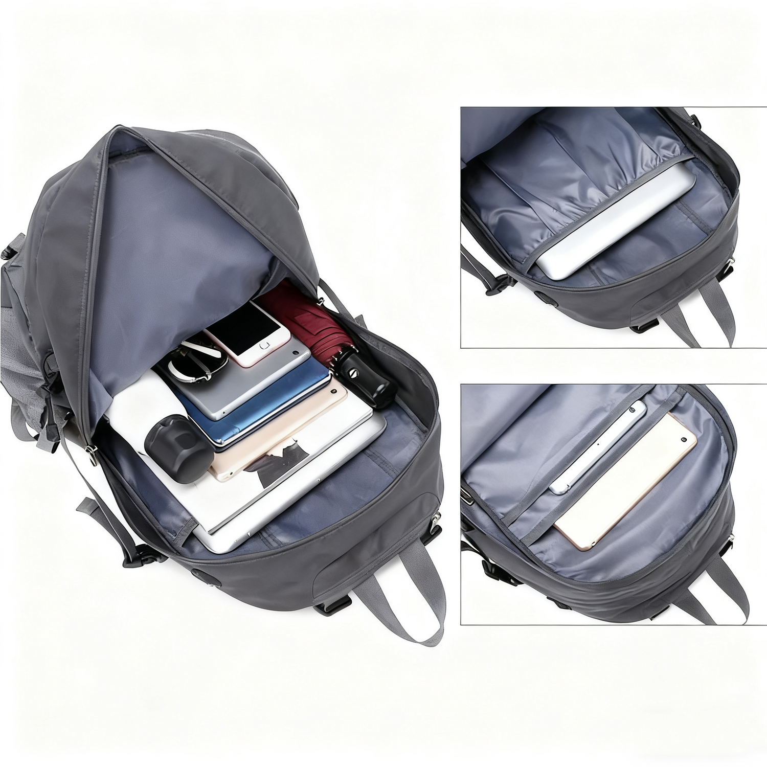 Built from tear-resistant, waterproof nylon with breathable padded straps, this hiking backpack delivers comfort, durability, and all-day support. With multiple compartments and smart storage, it keeps your essentials organized—ready for hiking, camping, or any journey ahead.