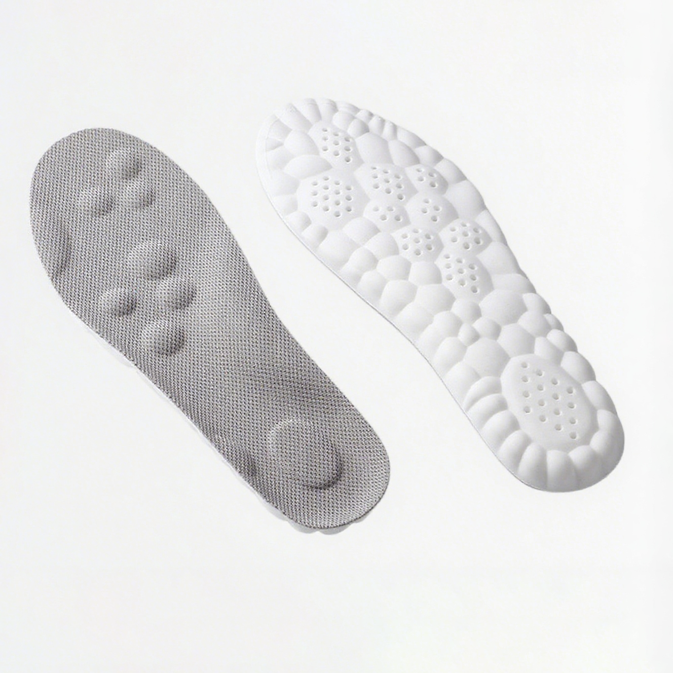 4D Massage Orthopaedic Foot Insoles provide multiple benefits, including superior shock absorption to minimize impact during activities, enhancing comfort in footwear, and ultimate foot pain relief, making them an excellent option for people who are on their feet all day. The unique 4D design conforms to your foot's natural shape, delivering support where it's needed most. Whether you're walking, running, or standing for extended periods, these insoles can reduce fatigue and promote wellbeing.