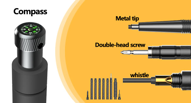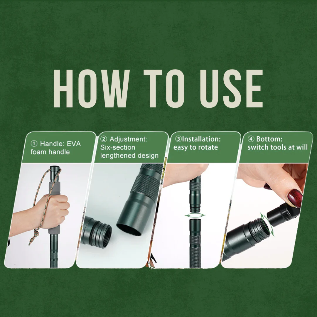 Stay safe and prepared wherever you go — signal for help with the emergency whistle, find your way with the built-in compass, and rely on the dual-head screwdriver and durable foot pads for quick fixes on the trail. More than a stick, it’s your all-in-one survival kit.
