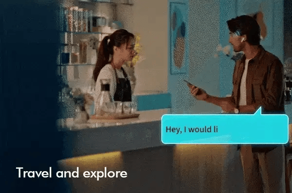 Our earbuds allow you toeasily translate & communicate with others in real-time by simply giving one earbud to a partner, it will translate the conversation between you.
