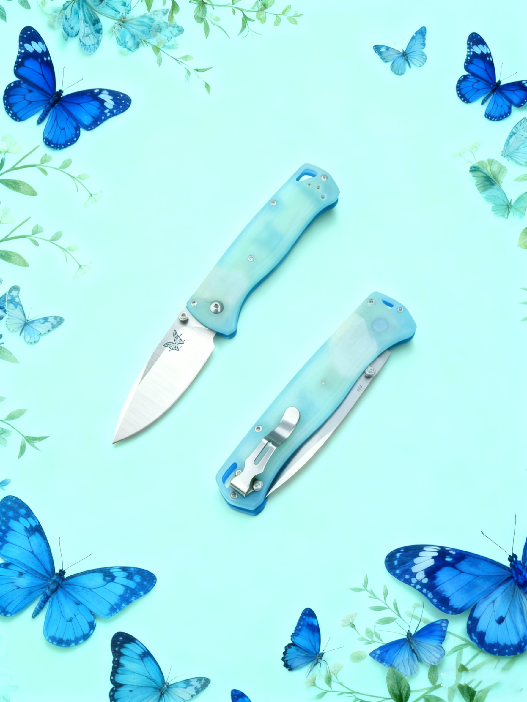 Crafted as a limited-edition showpiece, the Blue Butterfly handle transforms the BM 535 from a practical everyday tool into a work of modern craftsmanship. Its graceful lines, translucent depth, and signature blue motif create a mesmerizing look that feels as exquisite in the hand as it appears to the eye. A rare design that blends beauty, precision, and personality—perfect for those who appreciate gear with soul and style.