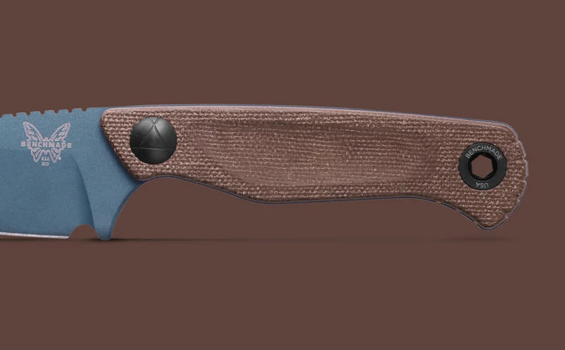 Introducing the 203BT-03 Dacian™—a fixed blade built for hard use and everyday reliability. Its MagnaCut spear-point blade with a Blue Titanium Cerakote® finish offers strength and corrosion resistance, while the grooved brown micarta handle ensures a secure, comfortable grip. Complete with a scout-carry leather sheath and Boltaron® insert for reliable retention, it stays ready and accessible for any task.