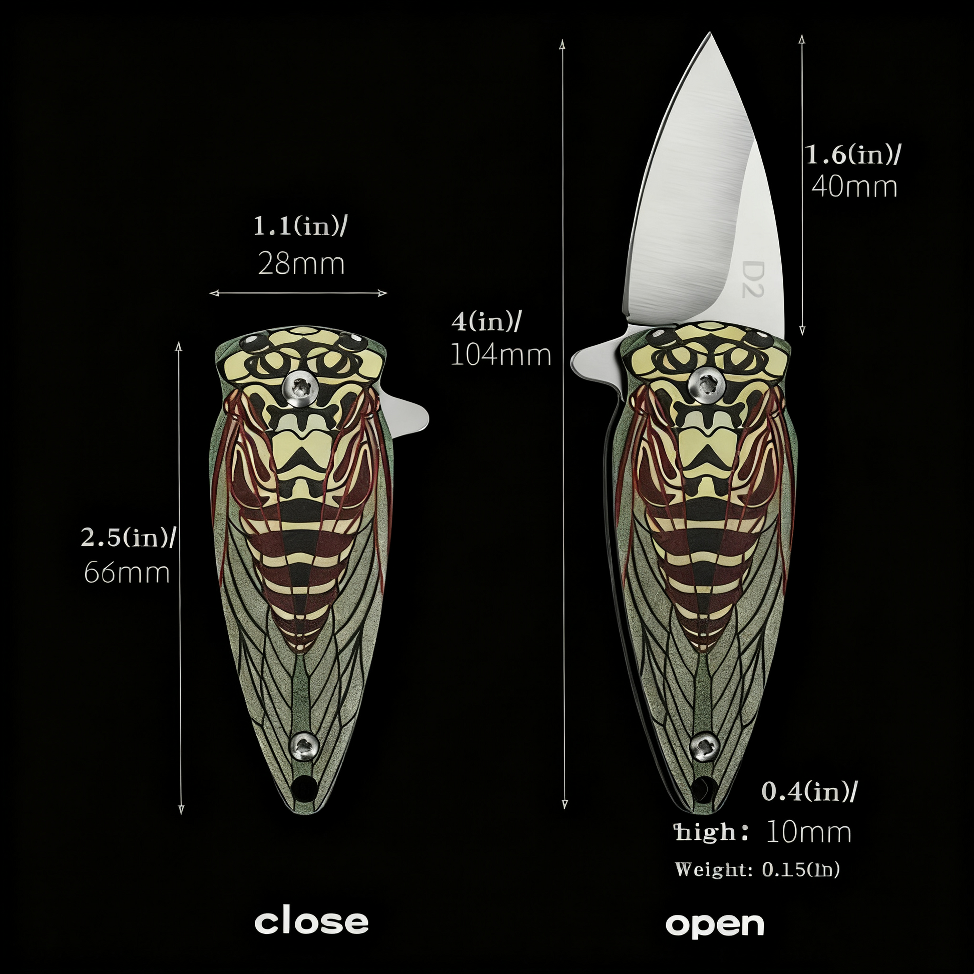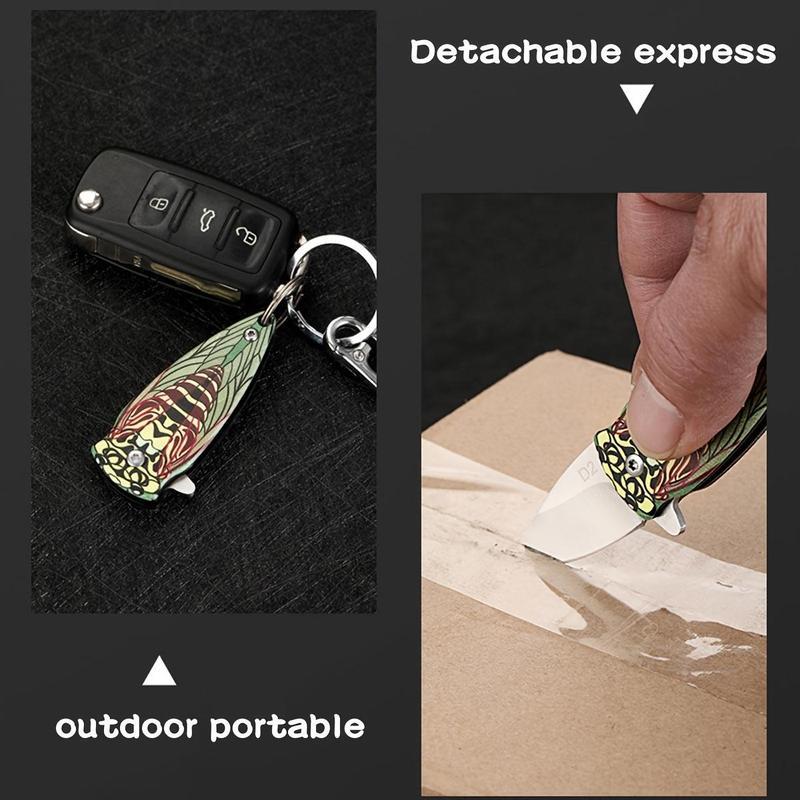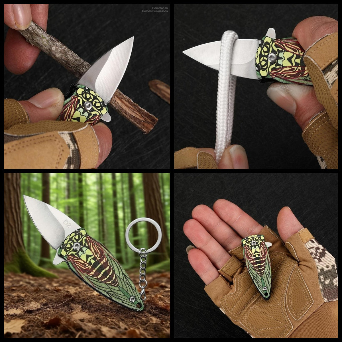 Compact in size but bold in character — this cicada-inspired mini EDC tool captures the spirit of the wilderness in your palm. Crafted from durable D2 steel, it delivers precision and reliability for everyday adventures. With its vibrant, artistic handle and convenient keychain design, it’s more than just a tool — it’s a pocket-sized statement of freedom, ready whenever you are.