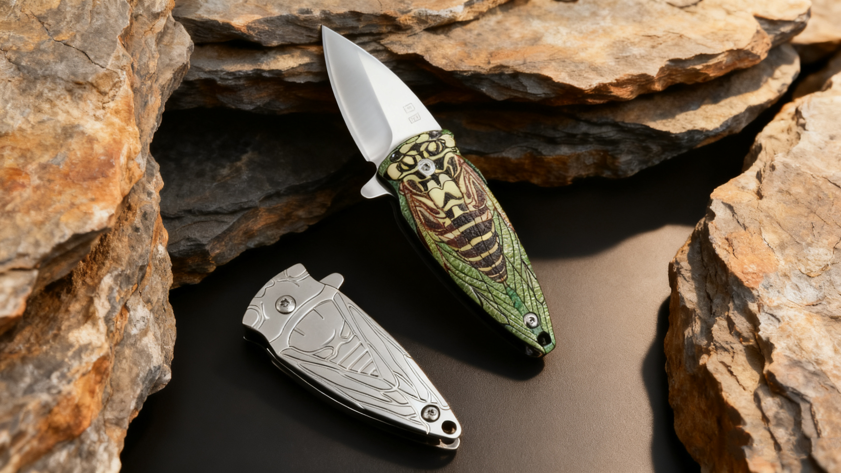 Inspired by the delicate yet resilient wings of the cicada, this mini EDC tool embodies the harmony of nature and craftsmanship. Every curve of the handle mirrors the organic patterns found in the wild, while the vibrant colors reflect the energy and freedom of untamed landscapes. More than just a tool, it’s a piece of wearable art.