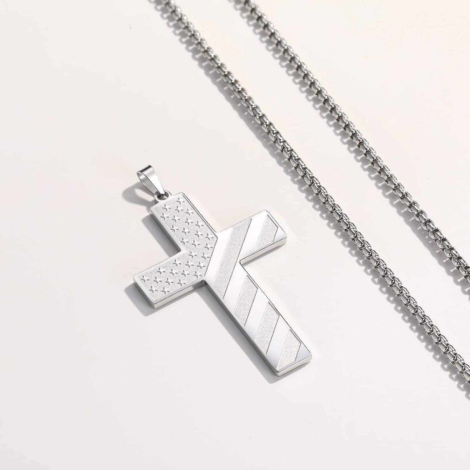 Carry your faith close to your heart and your pride for America with this Cross Necklace with Bible Verse & American Flag Pendant. Crafted from durable stainless steel, it’s more than jewelry—it’s a bold declaration of who you are and what you stand for.