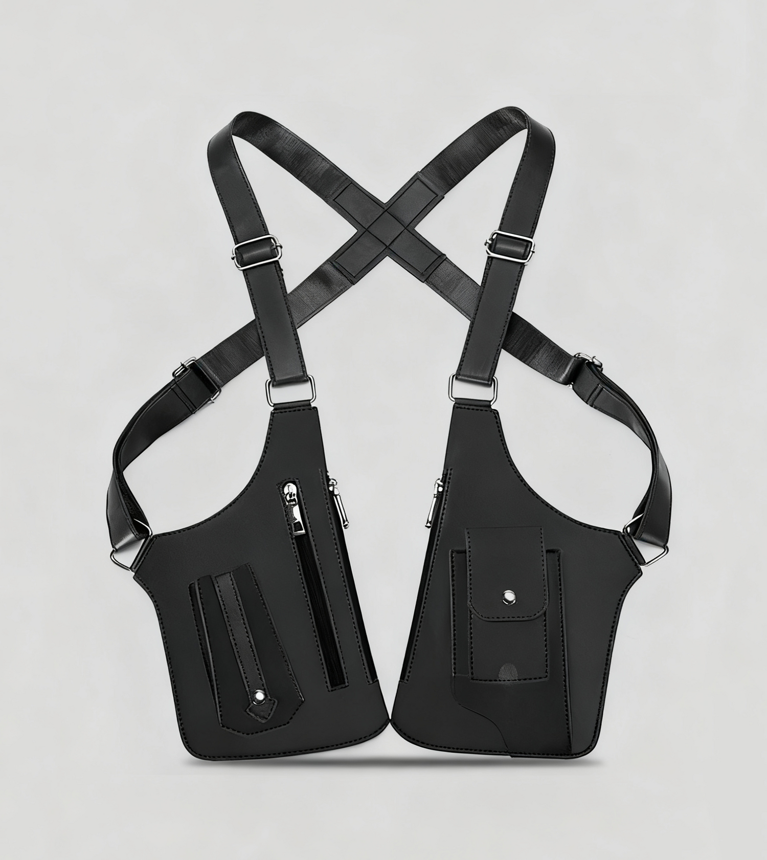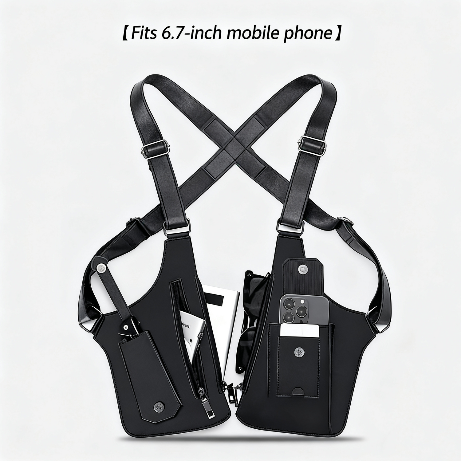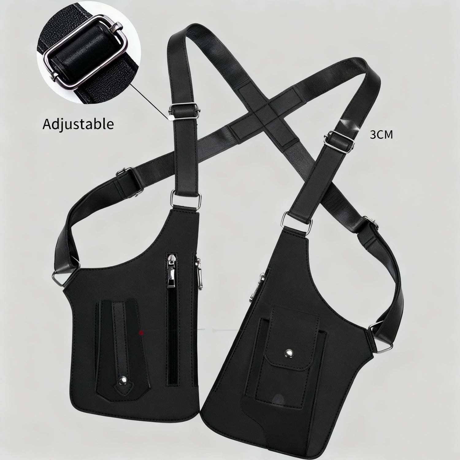 The double shoulder holster is designed with adjustable straps and a telescopic fastener, ensuring a perfect fit for both men and women. Whether worn over a T-shirt or under a jacket, this bag offers versatile comfort and effortless wear, adapting to your body for a secure and snug feel.
