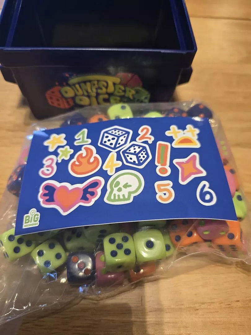 A: Dumpster Dice is great for ages 6 and up. Younger kids should always play under adult supervision to ensure safety and prevent small parts (like dice) from being swallowed.