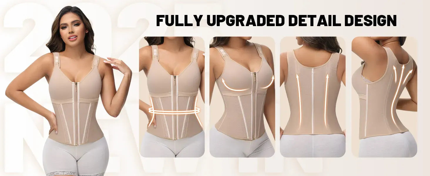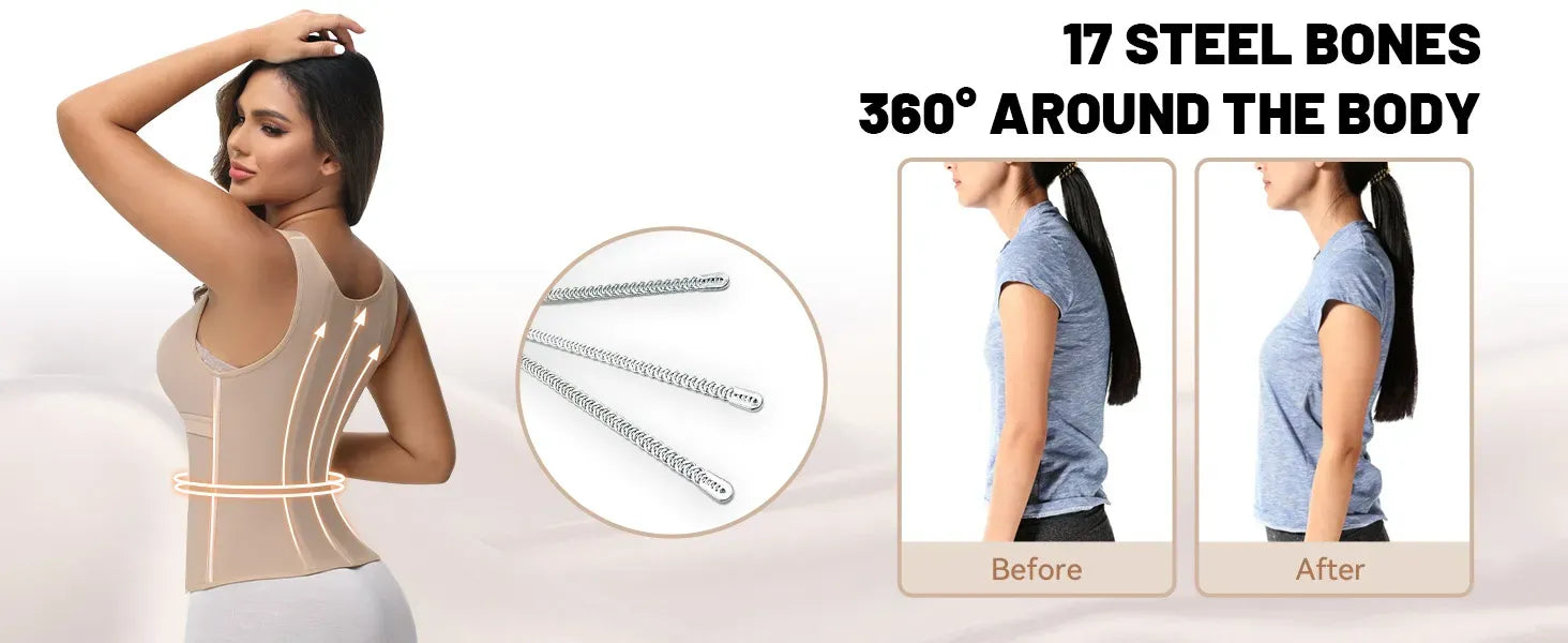 See the difference in seconds. Our upgraded steel-boned design delivers unmatched support — flattening your tummy, lifting your bust, and giving you that confident, hourglass posture. Ordinary shapewear? It doesn't stand a chance.