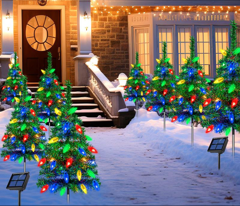 Absolutely! The Solar Christmas Trees are versatile and can enhance various outdoor settings. Whether you want to decorate your front yard, garden, patio, or backyard, these solar-powered trees offer flexibility. Their vibrant multicolor lights attract attention and create a warm festive atmosphere, making them perfect for holiday parties, family gatherings, or simply brightening up your outdoor space during the Christmas season.