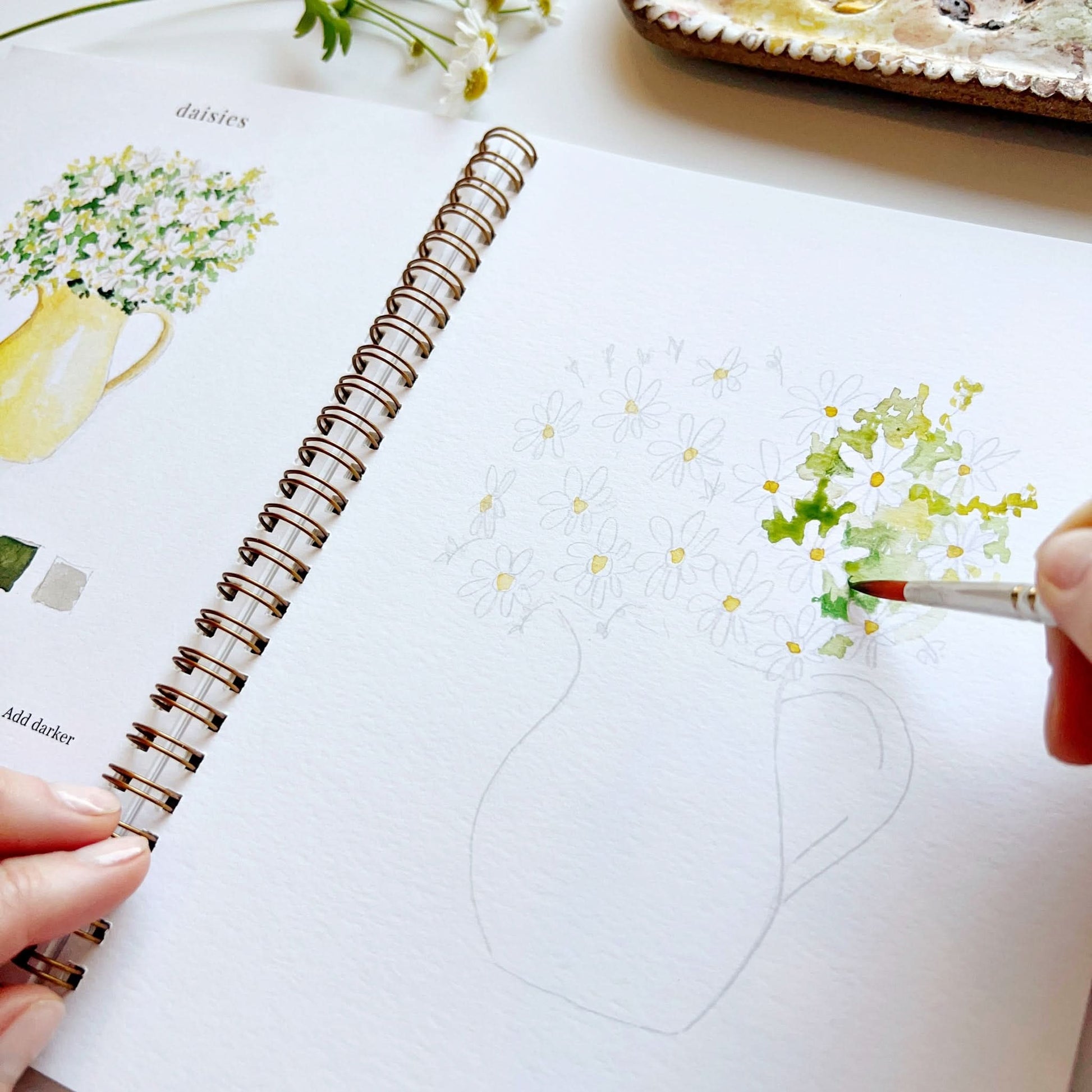 A: Yes! The workbook comes with a 12-color watercolor paint set. Just grab a brush and you’re ready to paint.