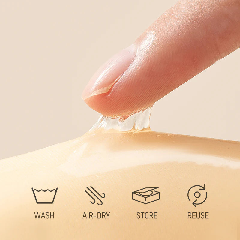 This sticky bra can be reusable for many times. Simply wet the adhesive surface with warm water and then air dry. Then it will still keep the adhesive gels ready for your next use.