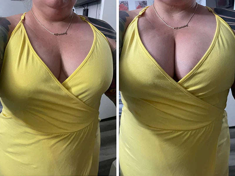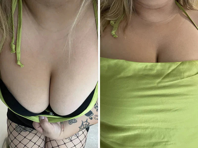 Which contains skin-friendly silicone, and the good stickiness will not cause any pain to the skin. The high-strength adhesive of the backless adhesive bra keeps your breasts in a firm and comfortable position without worrying about falling off.