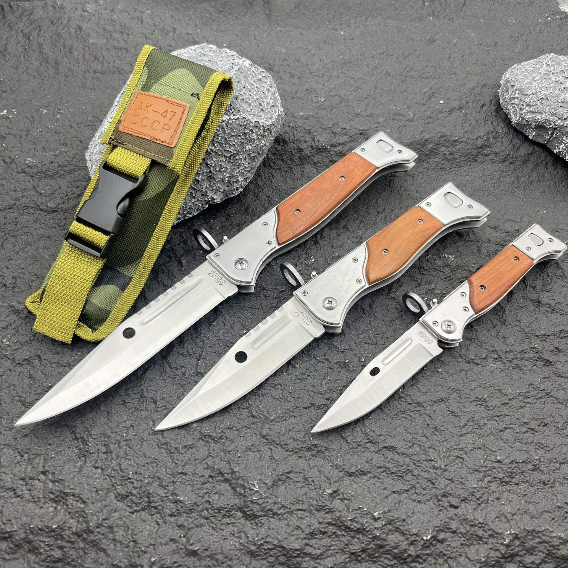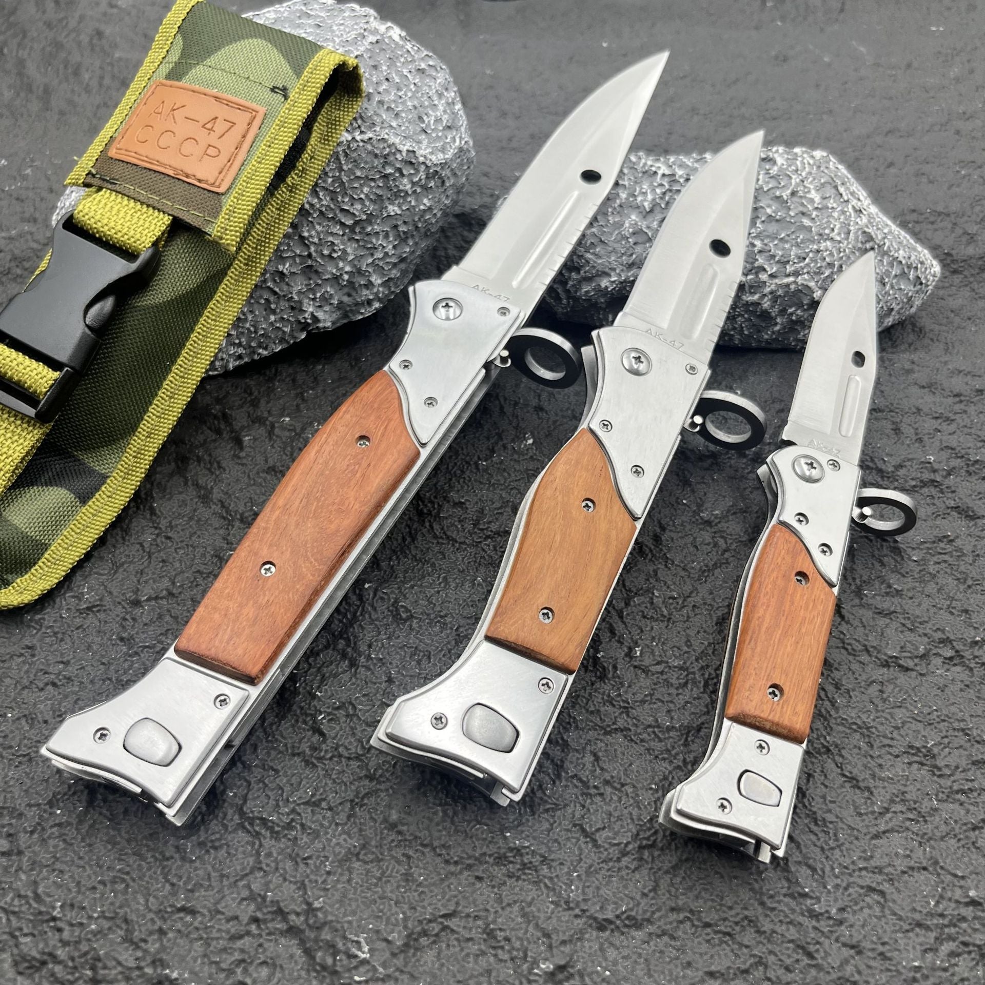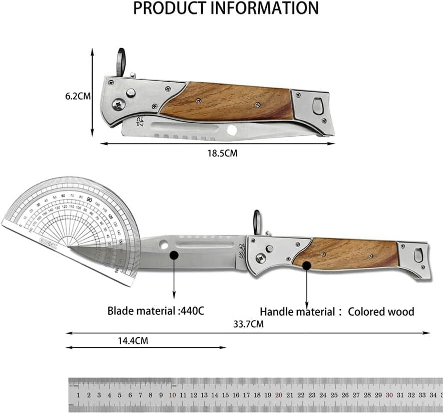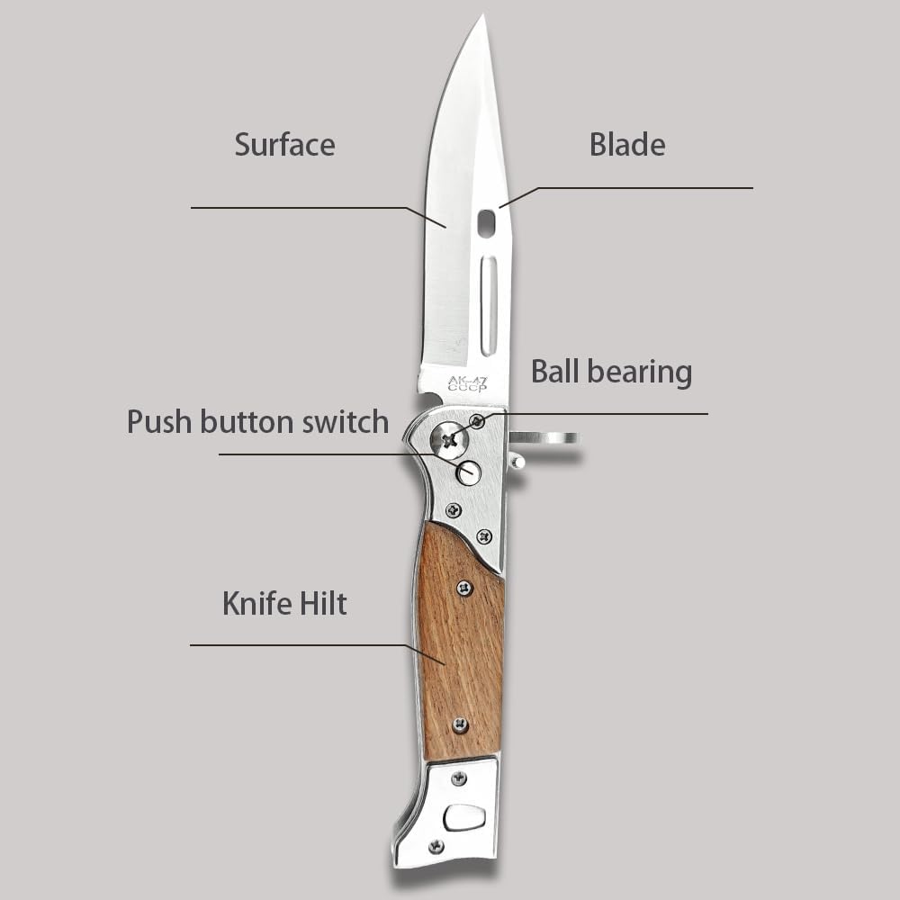 Precision-engineered with a 13" 440C steel blade and authentic wooden handle, this tactical folding knife combines iconic AK-47 heritage with robust button-lock technology. The innovative slide safety lock ensures instant deployment and secure handling, making it your ultimate EDC tool for camping, hunting, and survival.