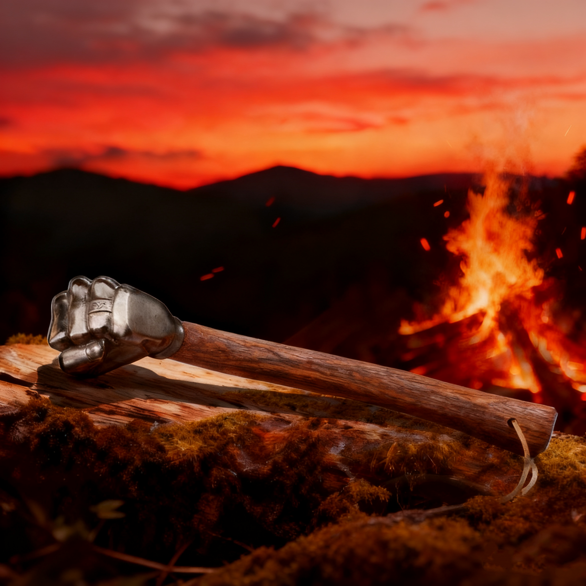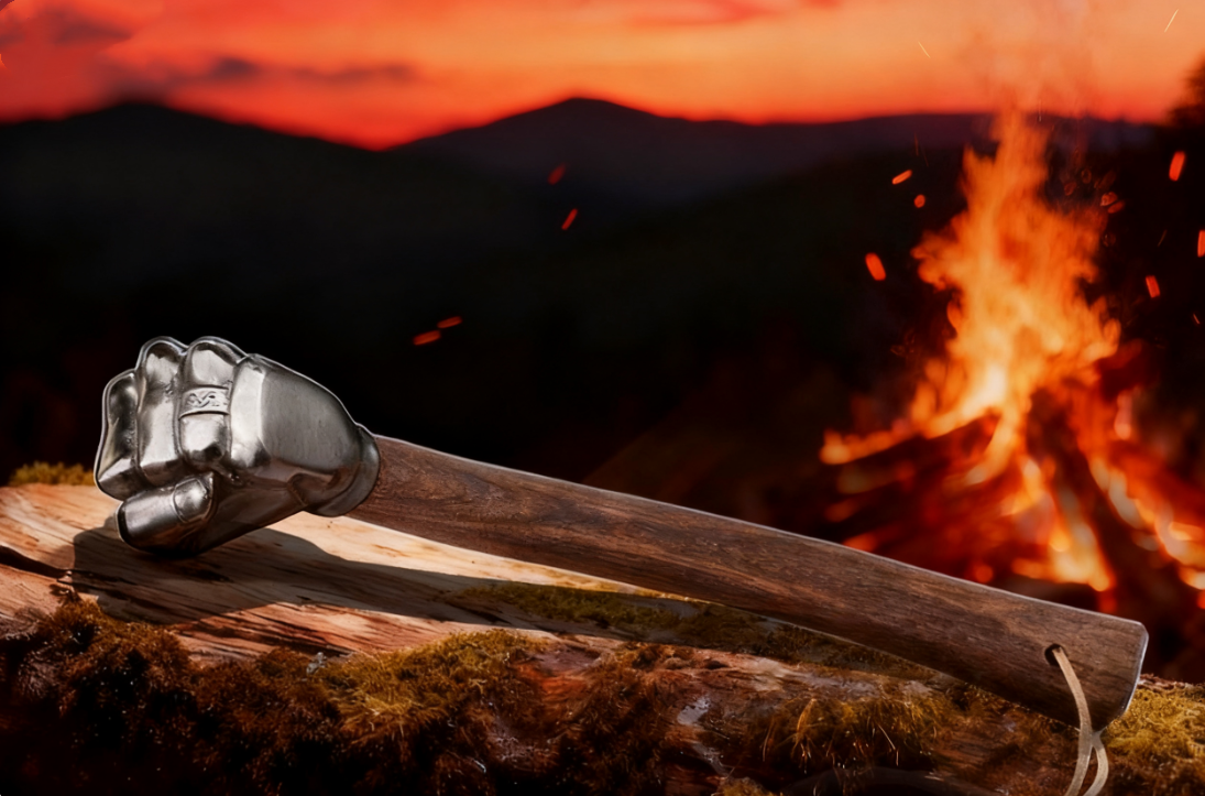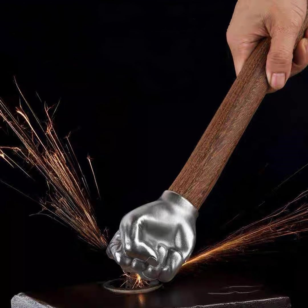 Forged in intense heat, this hammer is crafted from solid stainless steel with a 20% silver content. Each fist-shaped head is hand-forged and polished to perfection, while the wooden handle is carefully carved for comfort and strength. Born in fire, every step of its creation is driven by precision and craftsmanship, resulting in a tool that embodies both power and artistry.