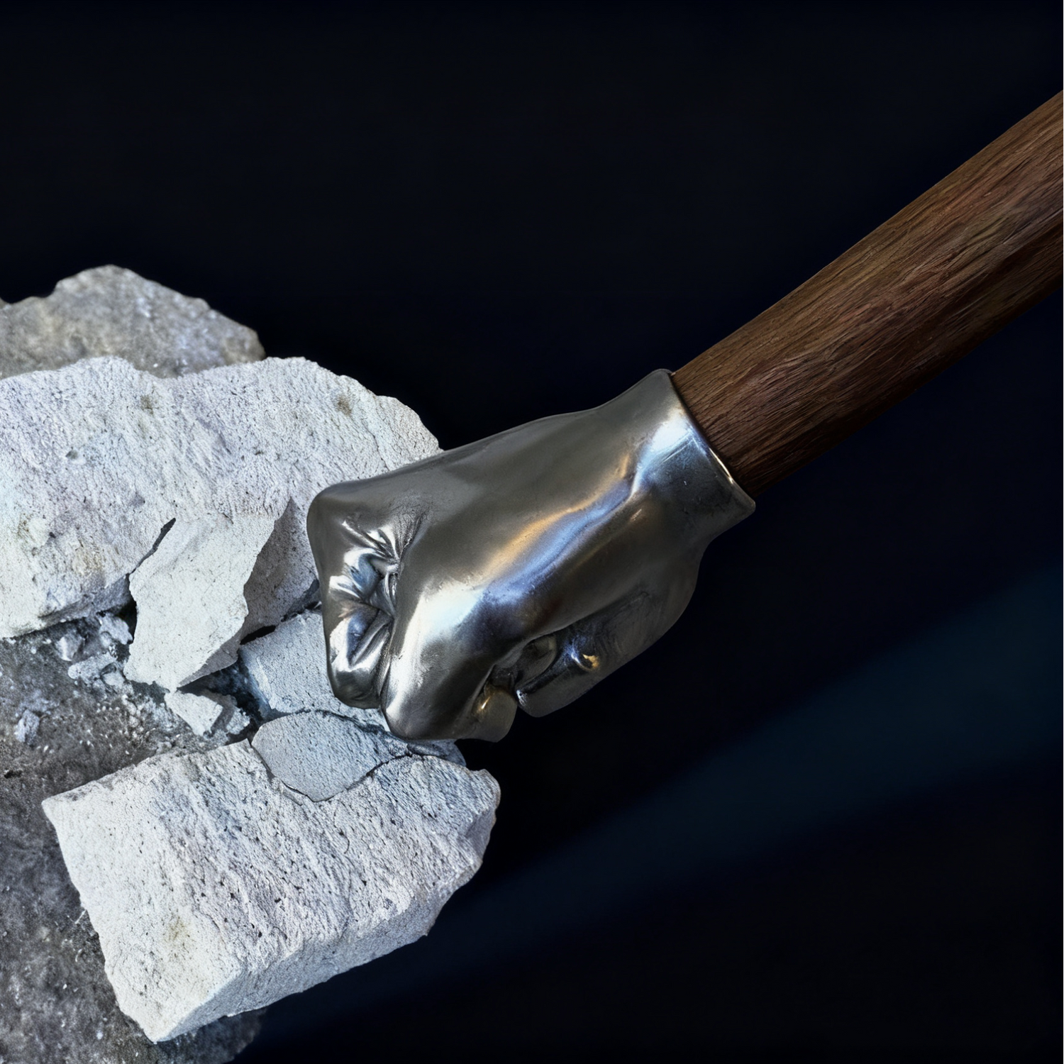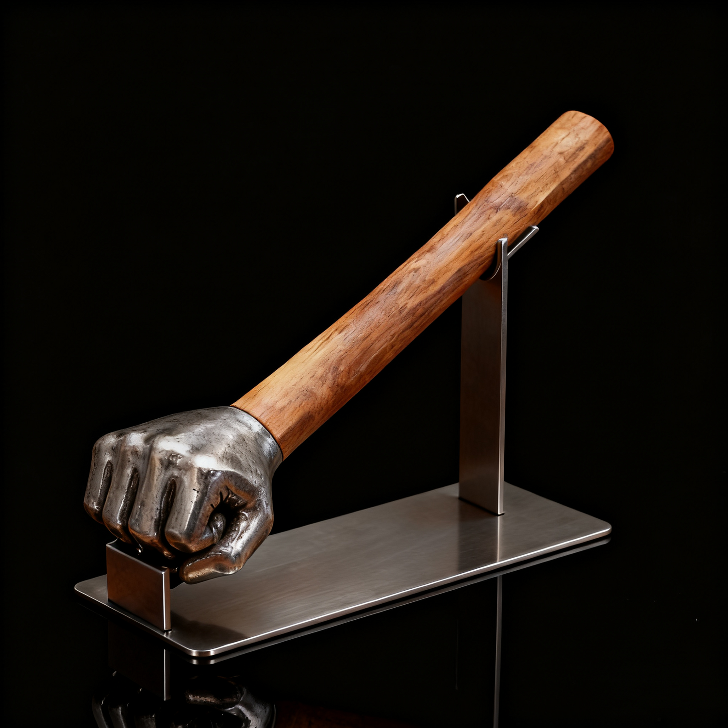 This hammer is a finely crafted work of art. Its fist-shaped stainless steel head, containing 20% silver, is hand-forged and polished to highlight every detail, while the smooth wooden handle is sculpted for both elegance and comfort. Every line and curve reflects meticulous craftsmanship, creating a piece that is not just a tool but a unique, striking art object.