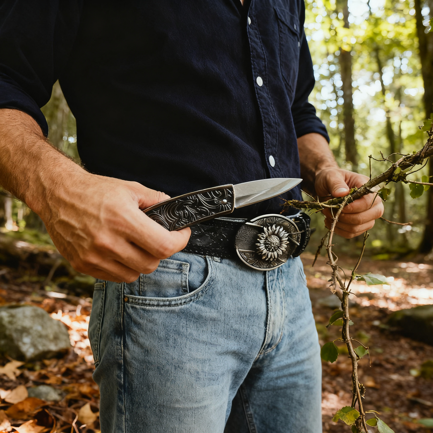 Featuring a hidden, razor-sharp utility blade in the buckle, this belt is a discreet lifesaver in the wild. Made from durable cowhide with a solid zinc alloy buckle, it endures rugged conditions while keeping a reliable, cutting-ready tool at hand — perfect for hiking, camping, or any adventure.