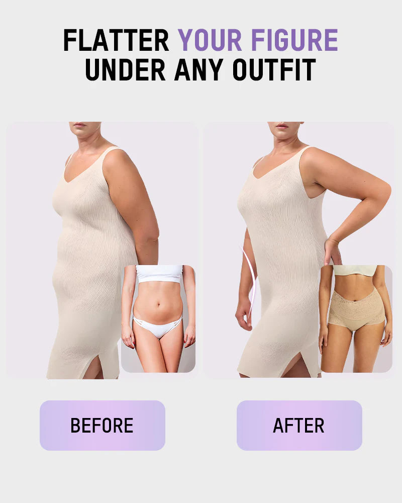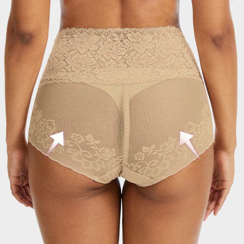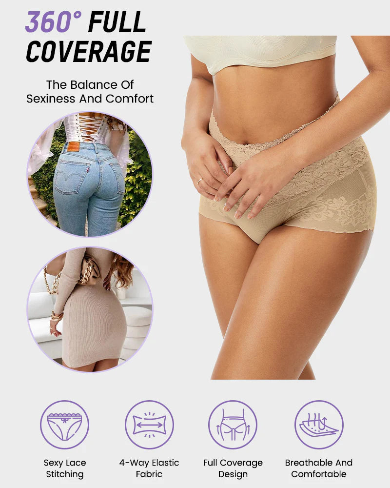 Feel confident, sculpted, and completely free from restriction. This high-waisted lace panty shapes your tummy and lifts your curves with second-skin softness.The seamless edges and stretch waistband keep everything smooth and invisible under clothes—no digging, no rolling. Whether lounging or out all day, you'll forget you're even wearing shapewear.