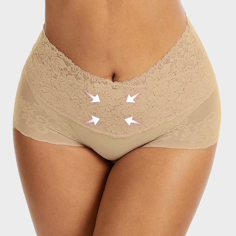 High Waist Lace V-Cut Breathable Shaping Panties (3 Pack)