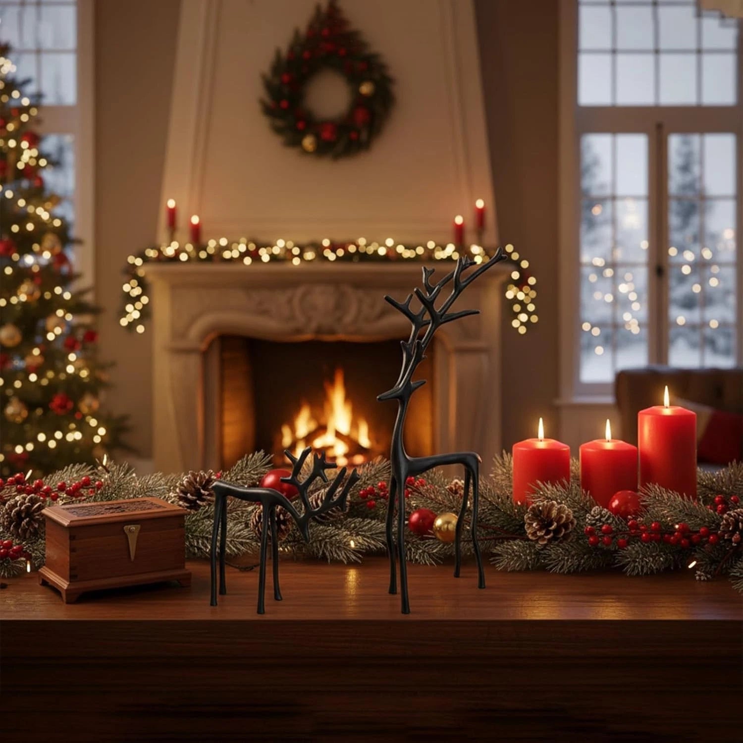 Elevate your festive décor with this metal reindeer duo — a perfect blend of minimalist design and modern charm. Expertly crafted from durable aluminum alloy with a refined black matte finish, these lightweight yet sturdy sculptures effortlessly complement any décor style. Featuring a large reindeer and a small companion, they’re ideal for decorating living rooms, bedrooms, offices, dining tables, or fireplace mantels.