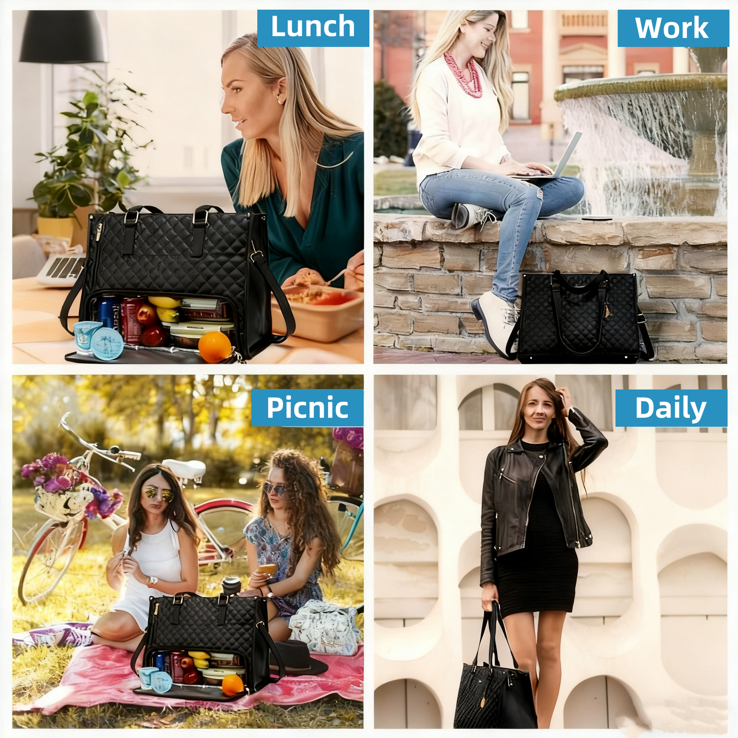 Lunch Tote Bag for Women – Quilted Laptop Handbag with Insulated Lunch Compartment
