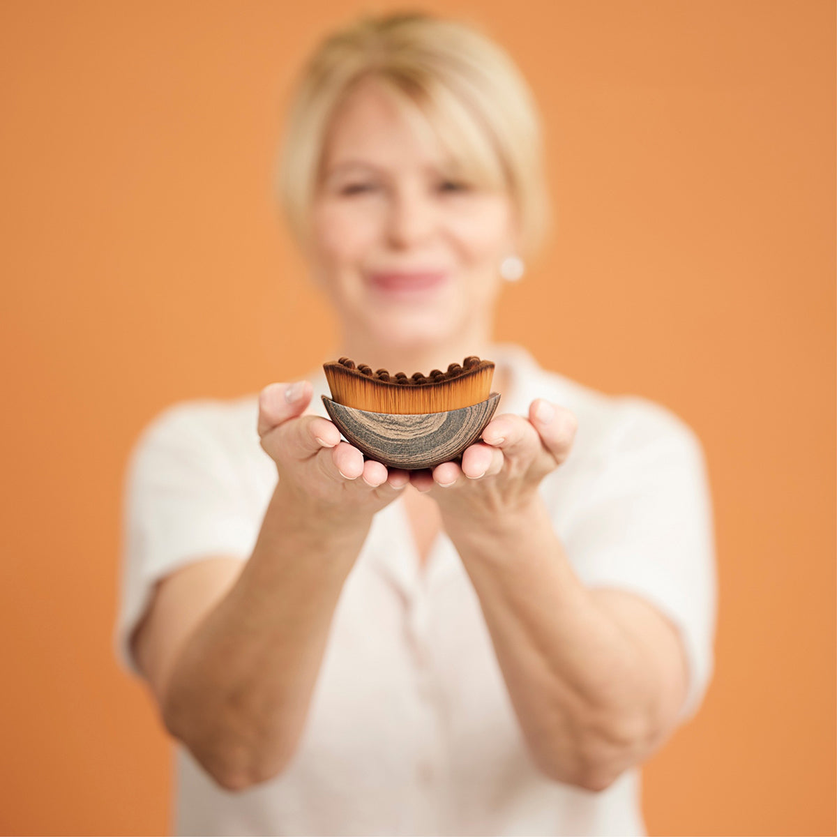 Its contoured shape ensures precise contact with the skin and accurate alignment with facial lymph nodes and drainage pathways. The bristles are soft yet durable, designed to glide without scratching or irritating even the most fragile skin types.