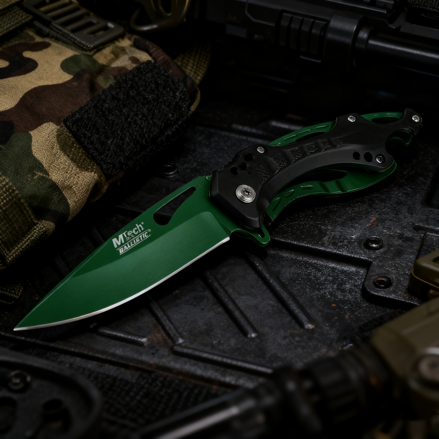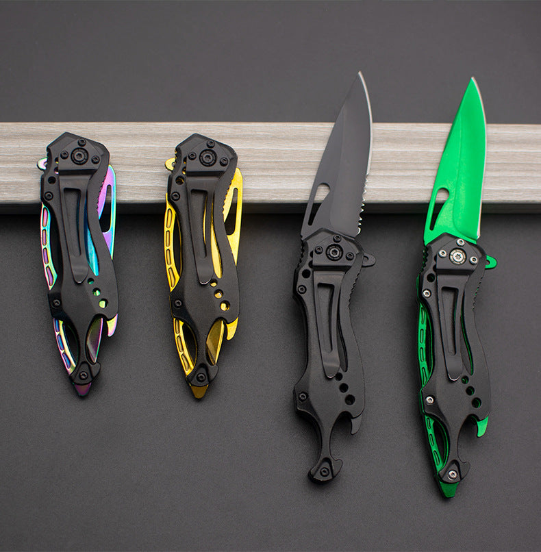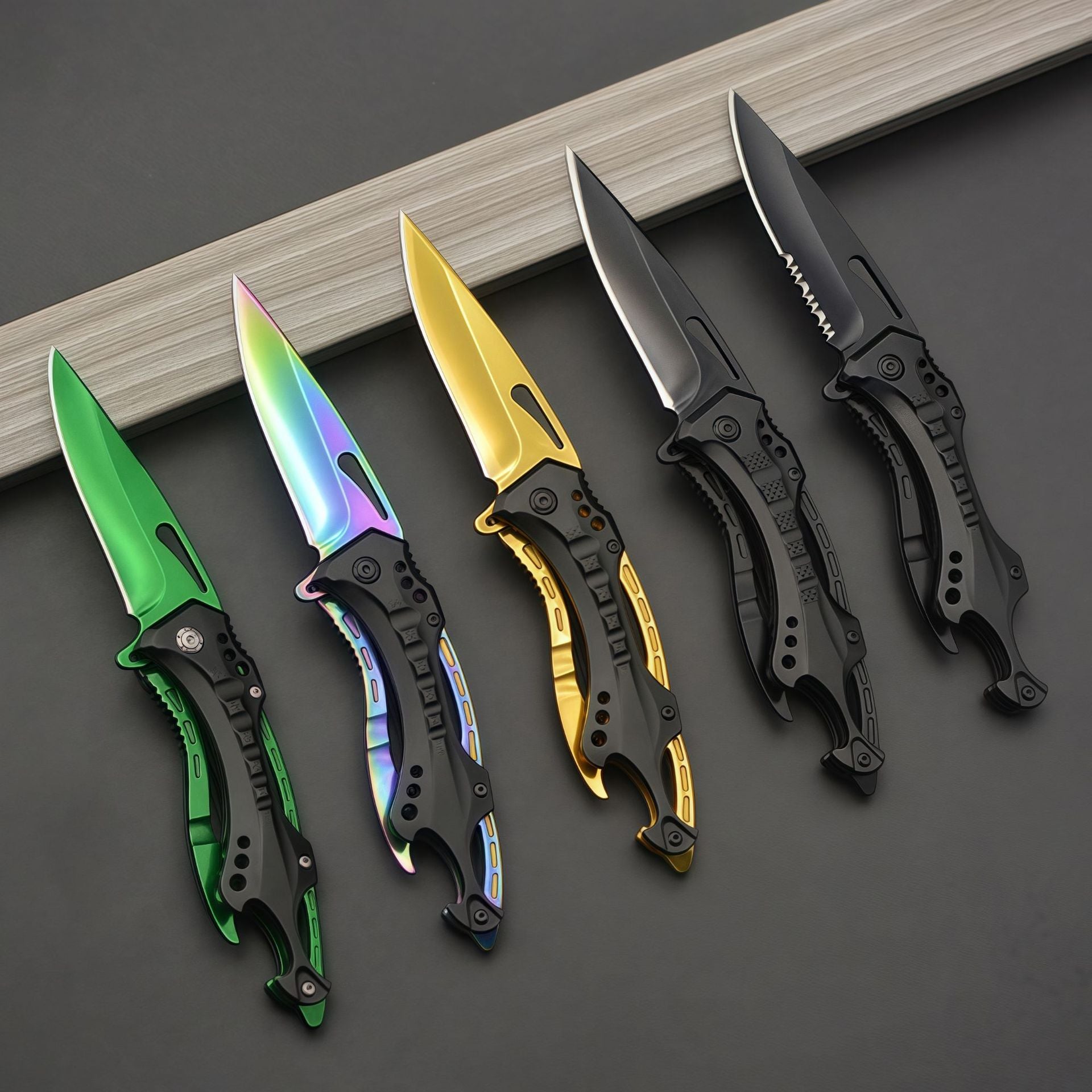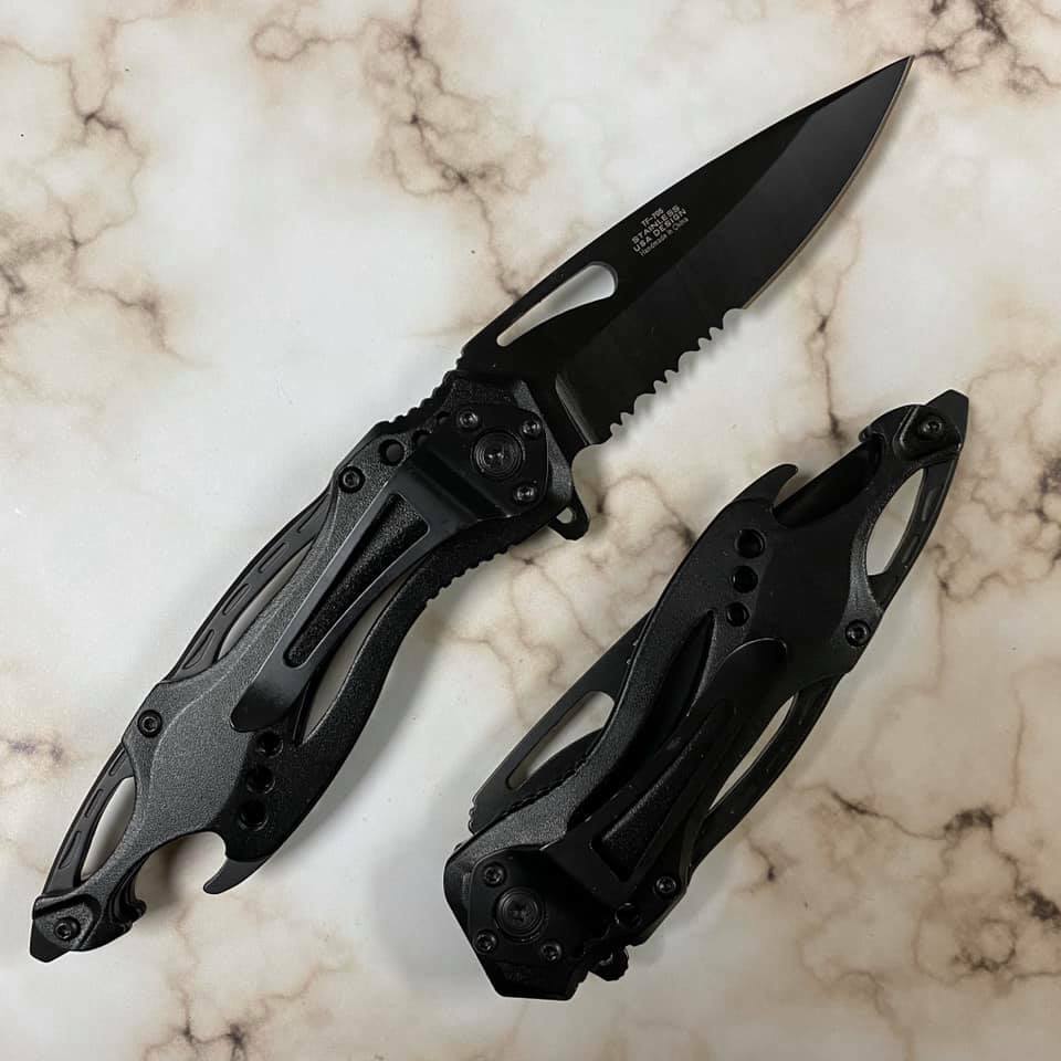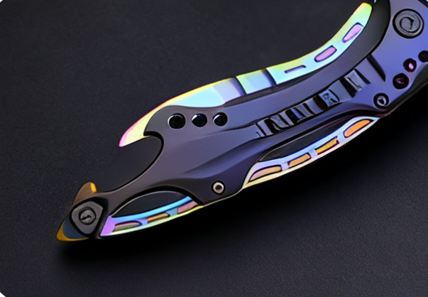 This knife combines tactical functionality with modern aesthetics. Its textured handle, hollowed details, and layered structure create a bold, contemporary look while enhancing grip and reducing weight. Every curve and contour is thoughtfully crafted.