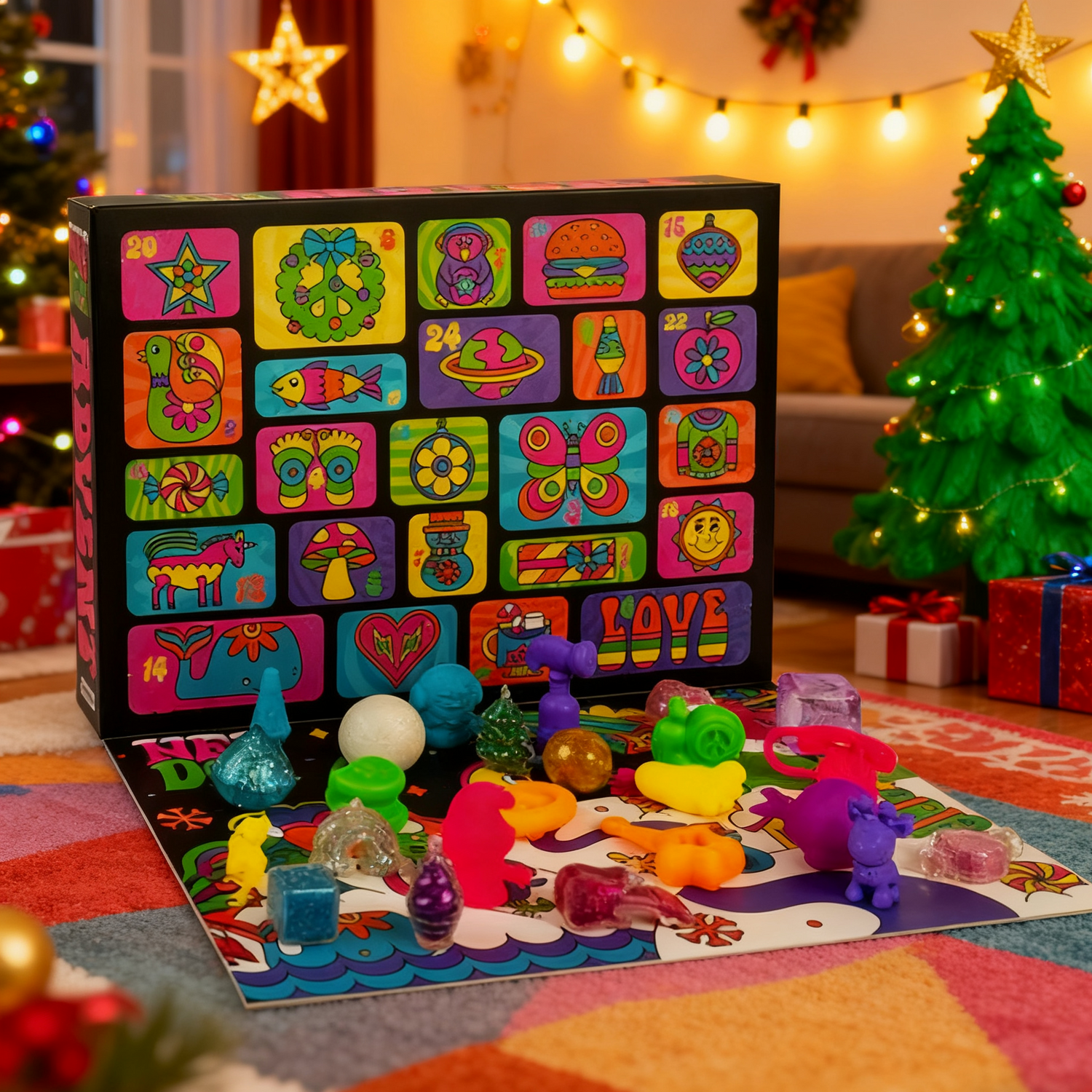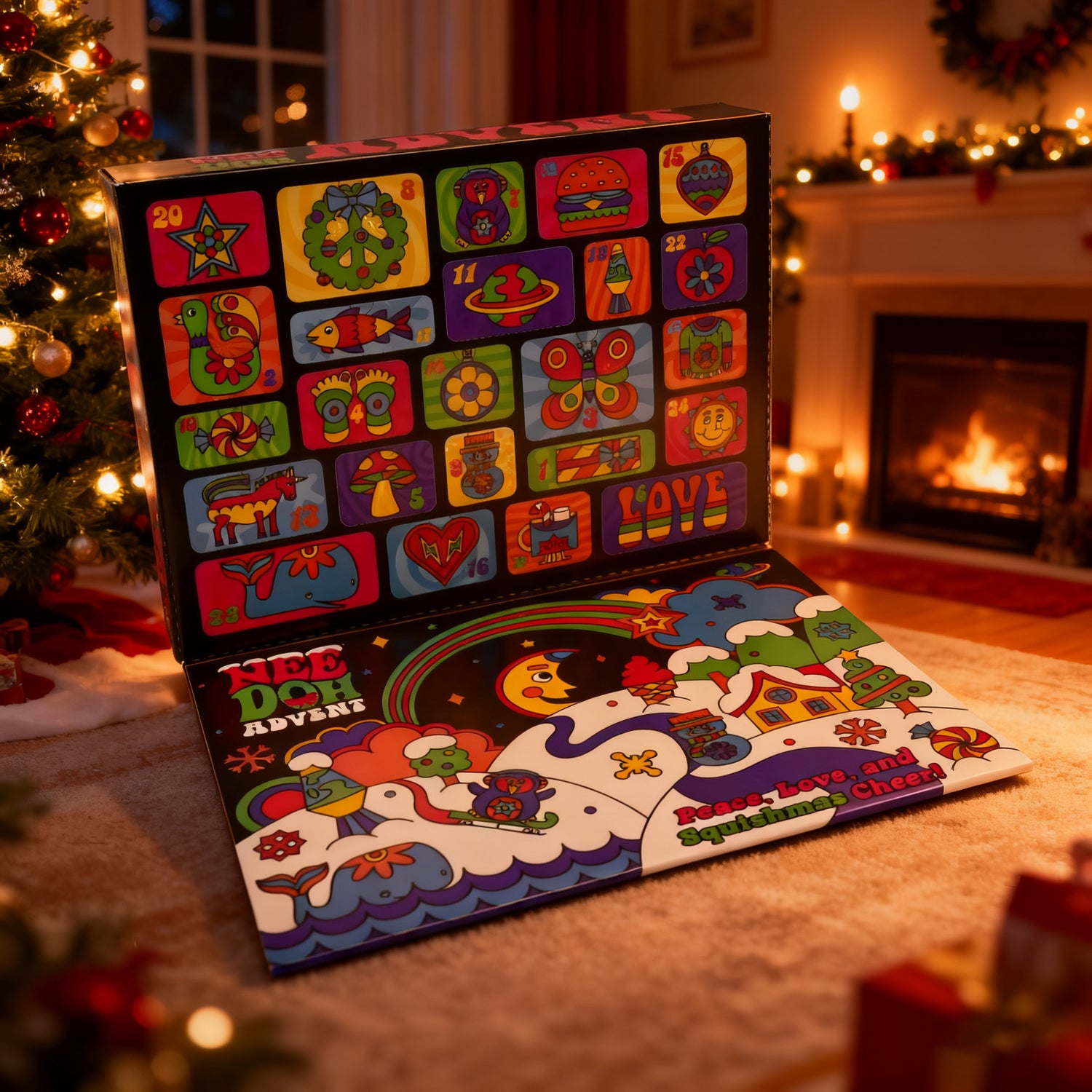 Countdown to Christmas with 24 days of squishy, colorful fun! Behind every door is a unique mini NeeDoh toy — from soft, bouncy Doh-Filled squishes to light, playful, and collectible surprises. Perfect for stress relief and endless sensory delight, this calendar turns every day of December into a groovy, squeezable adventure.