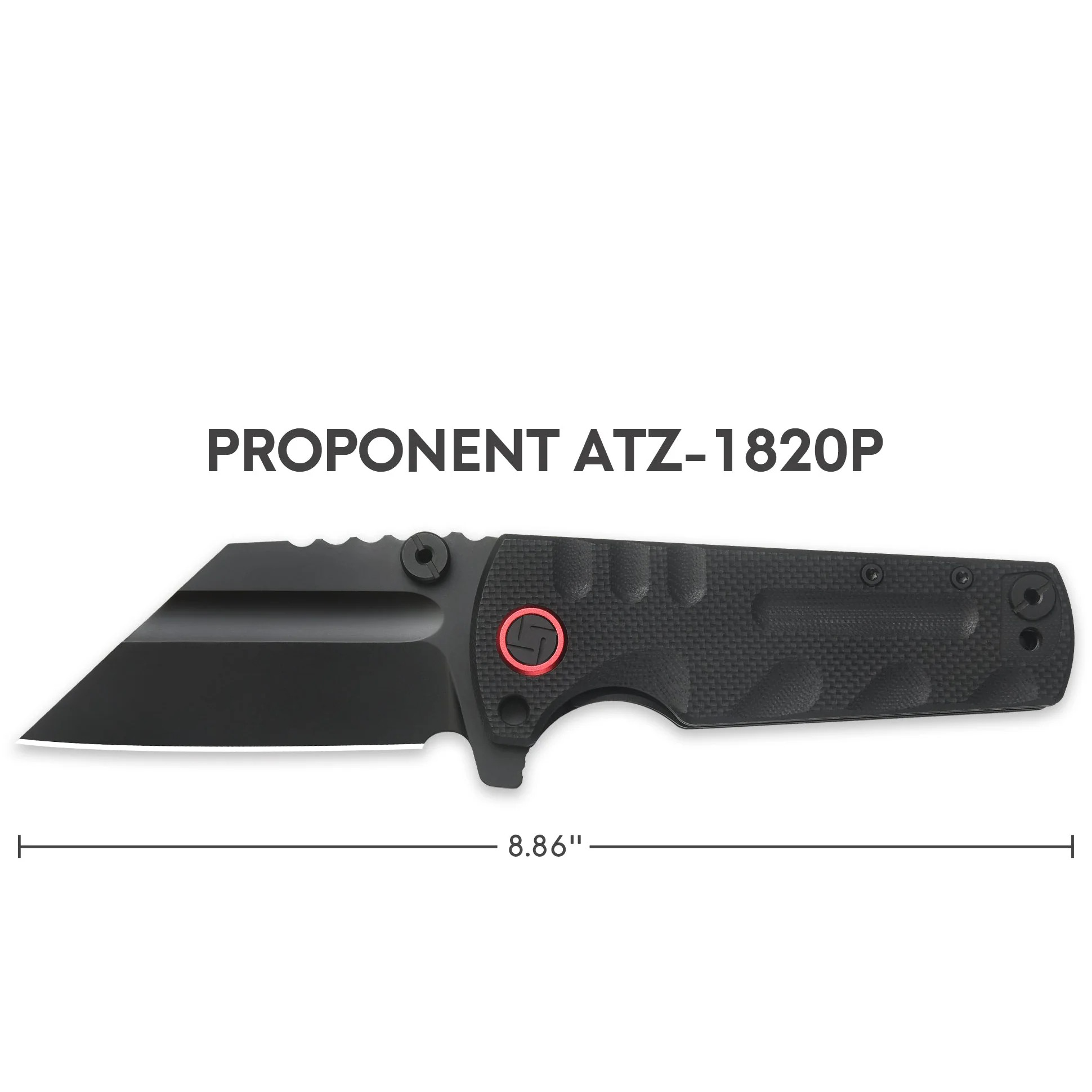 The Proponent ATZ-1820P stands as one of our most iconic folding tools. Featuring a commanding 4” Wharncliffe blade and an overall length approaching 9”, this tool is engineered well beyond the limits of conventional folders. Every detail exudes strength, purpose, and precision, making it a tool that truly makes a statement in the pocket.