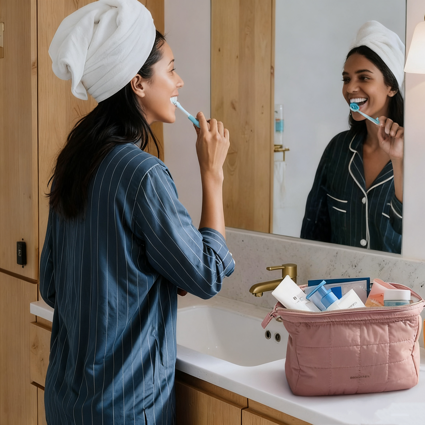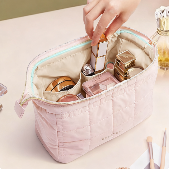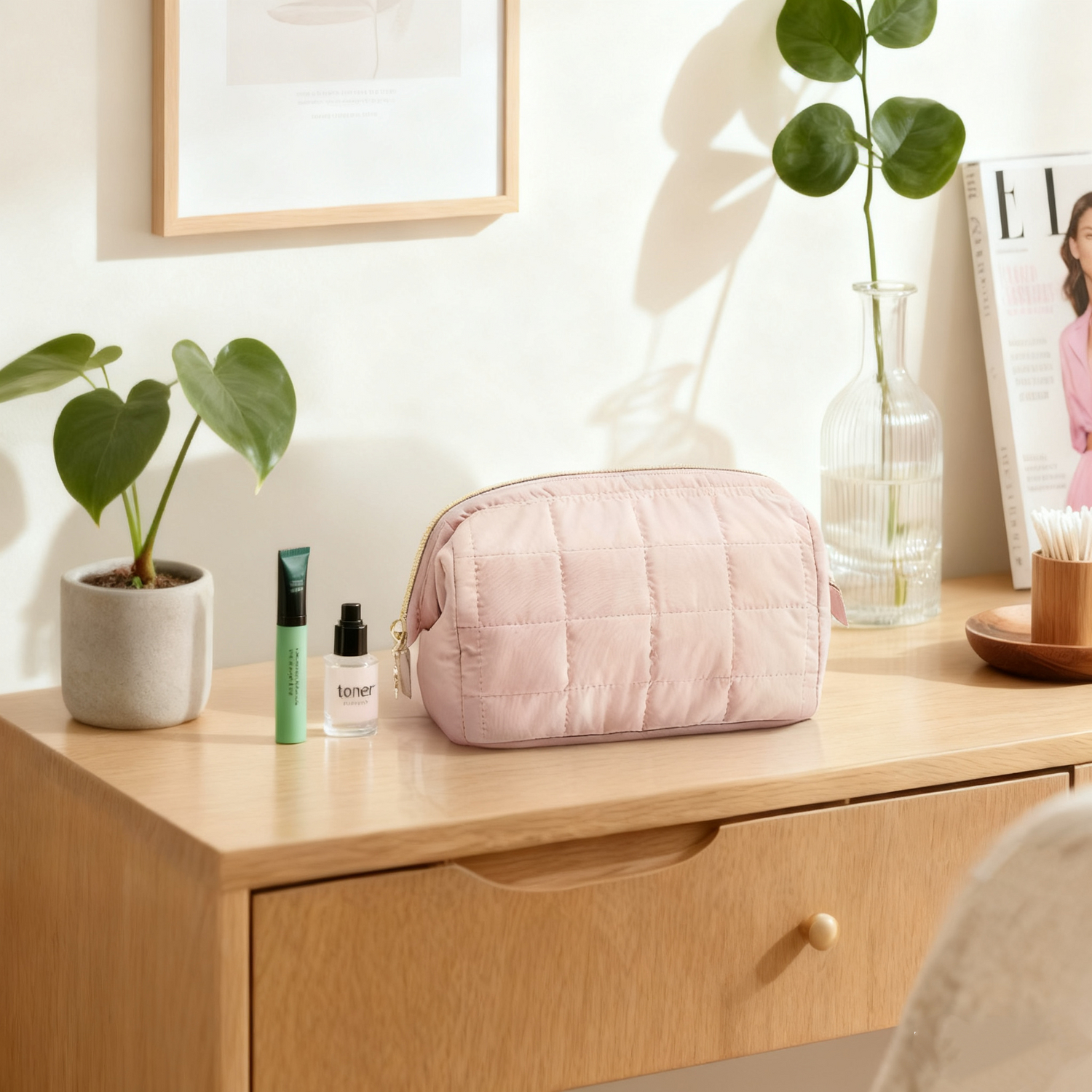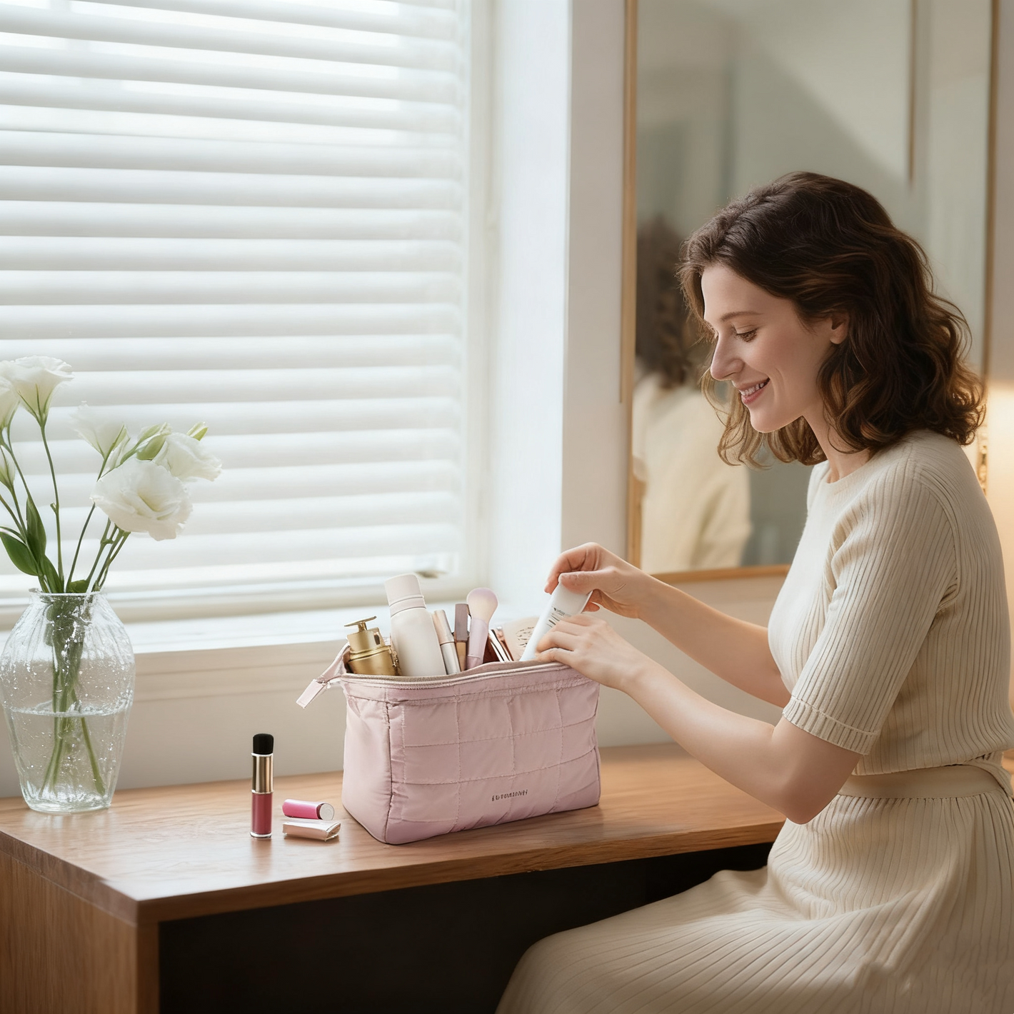 This makeup bag is the perfect blend of style and function. With spacious compartments and durable fabric, it keeps your essentials organized and accessible, whether you're at home or on the go. Its elegant design adds a touch of sophistication while being compact enough to carry anywhere.