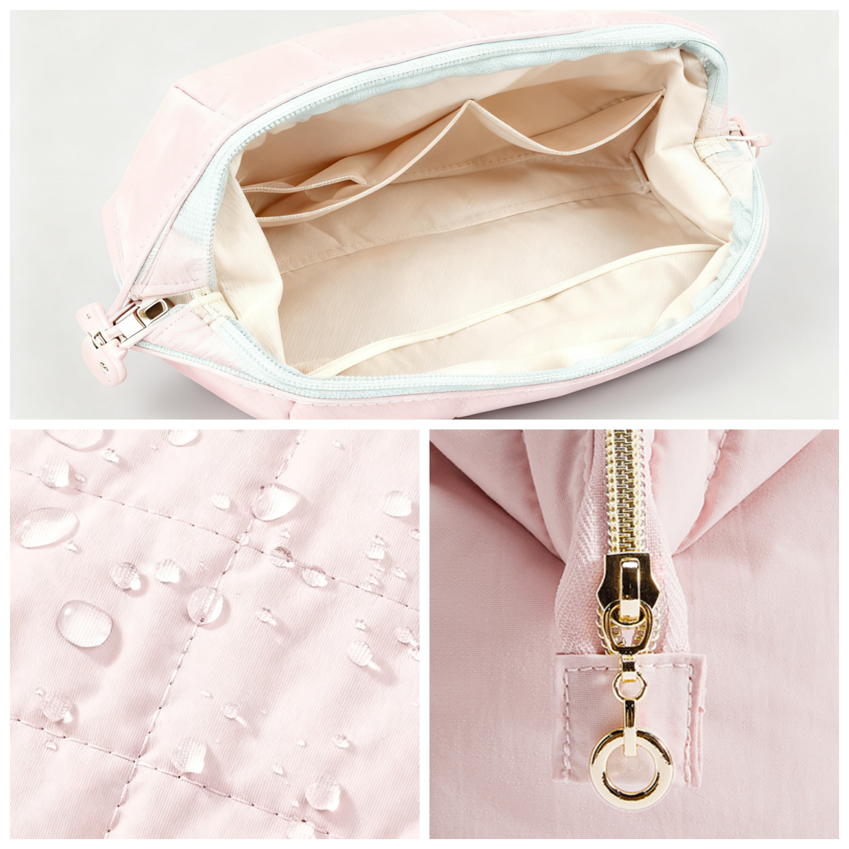 Stay organized with this stylish makeup bag. Thoughtful compartments keep your cosmetics neatly arranged, while the waterproof material protects your beauty products. Practical and chic, it adds a touch of glam to your daily routine, whether at home or on the go.