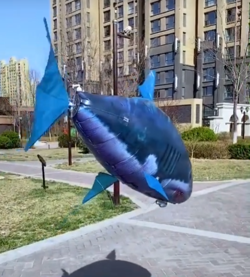 This remote-controlled flying shark combines balloon fun with realistic fish movement. Using biomimicry, it mimics a fish's tail motion for smooth, controlled flight. The unique controller adjusts the balloon’s up and down motion for a natural flying experience, blending nature and technology for endless fun.