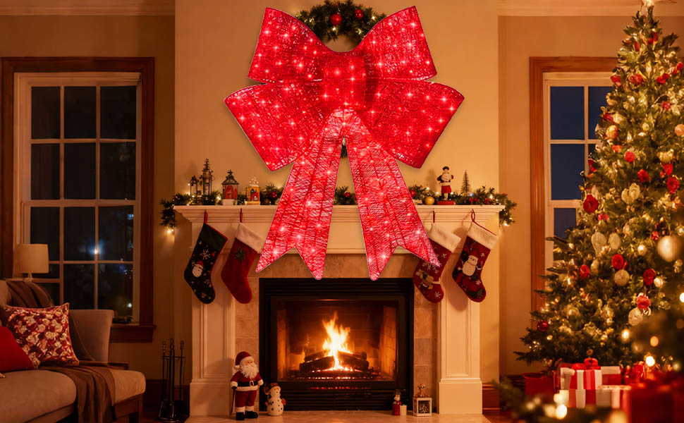 With its classic red color, glittering finish, and softly glowing LED lights, this bow adds an instant touch of charm wherever it’s placed. Whether on a door, window, or tree, its cheerful shape brings a playful yet elegant feel — turning any corner into a cozy, festive scene.