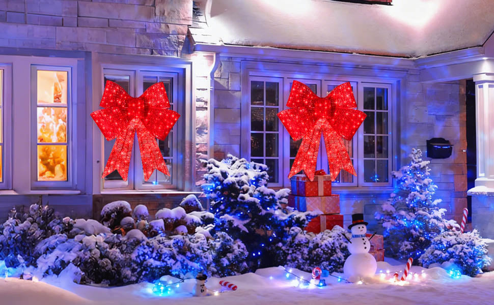 Built to withstand the season, each bow features a sturdy wire frame and high-quality materials that stay bright and beautiful through wind, rain, and cold. Perfect for outdoor decorating all winter long.