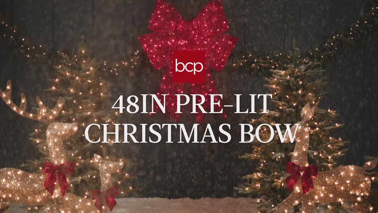 Measuring 48” tall and 42” wide, this oversized bow makes a bold festive statement. Its large, eye-catching design ensures every sparkle and detail stands out beautifully — perfect for doors, windows, or walls that deserve to shine this season.