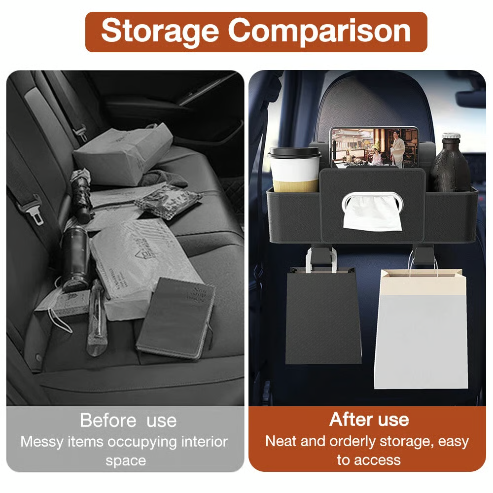 Store everything within reach—water bottles, tissues, shopping bags, even your phone! The built-in holder frees your hands for comfortable backseat viewing, while the sturdy design keeps every drive neat, tidy, and perfectly organized.
