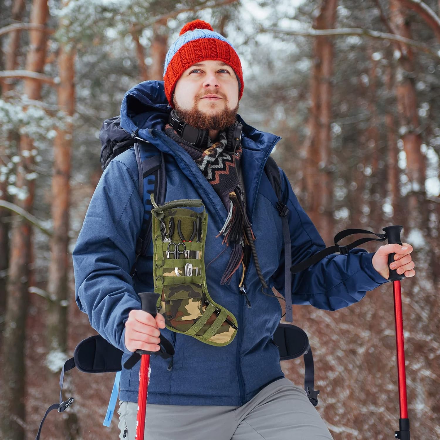 This tactical tool stocking uses abrasion-resistant, water-repellent heavy-duty fabric for outdoor durability. It has an external pocket, plus multi-sized secure pockets (for knives/pliers) and elastic loops (for flashlights), with MOLLE compatibility to add extra pouches.