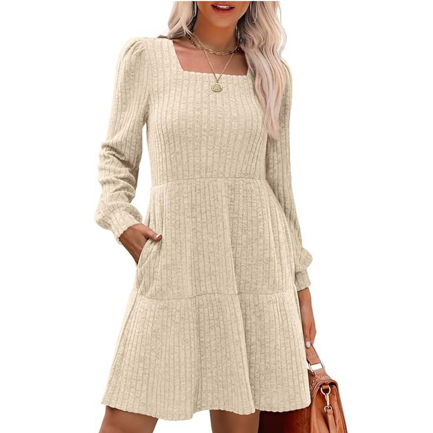 When the weather turns crisp, every woman needs that one dress that blends comfort with irresistible charm. This square neck babydoll sweater dress is designed to flatter your shape while keeping you warm, stylish, and ready for any fall occasion.