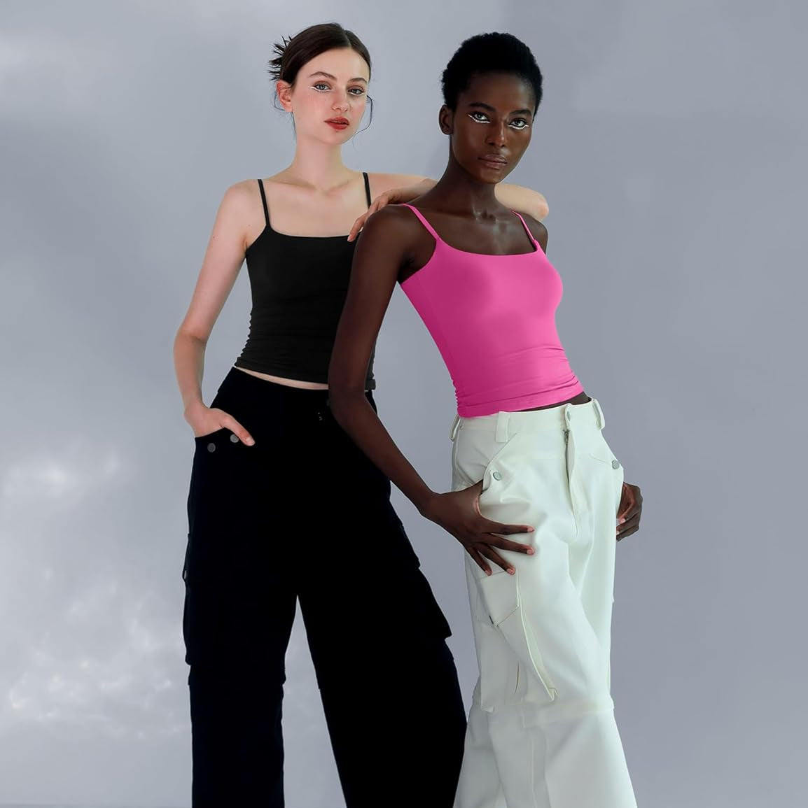 Women's Square Neck Tank Top Adjustable Spaghetti Straps Sleeveless