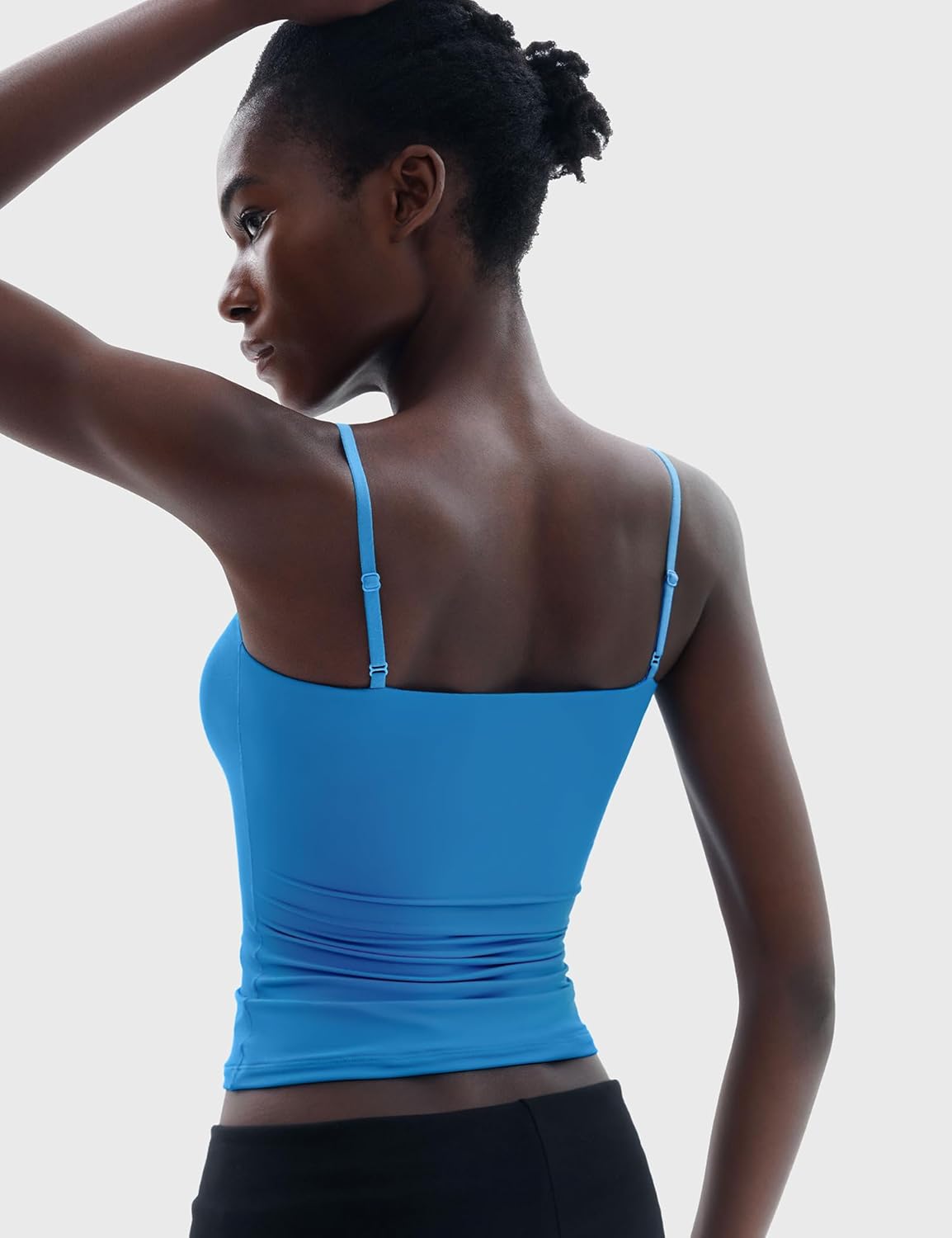 Designed with adjustable spaghetti straps, this tank gives you a personalized fit that stays perfectly in place. Move freely, dance, stretch — your straps won’t budge.